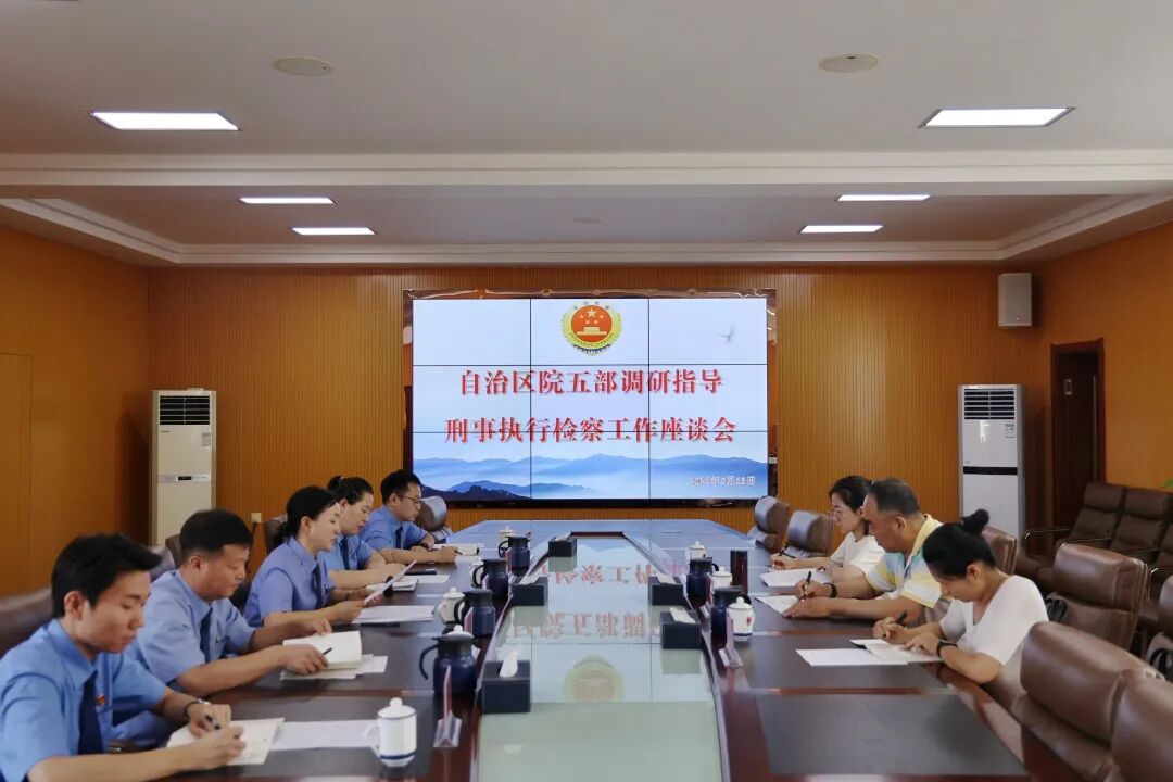 8月13日,内蒙古自治区人民检察院第五检察部三级高级检察官李伟一行深入翁牛特旗人民检察院调研指导刑事执行检察工作并召开座谈会,赤峰市第三检察部副主任谷晓红陪同调研,翁旗检察院检察委员会专职委员姜波及刑事执行部门工作人员参加座谈。