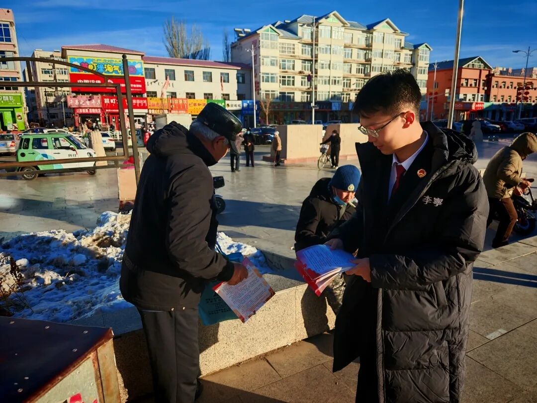 宪法宣传周期间,乌丹紫城广场上的检察普法身影格外亮眼,检察人员悬挂起“恪守宪法原则,弘扬宪法精神,履行宪法使命”宣传横幅,向现场群众发放印制的宪法知识和检察机关职能的宣传资料,向公众传递“宪法至上”的法治理念;在咨询台前,检察人员耐心解答群众提出的婚姻家庭、权益保障等各种法律问题,既细致解读法律条文,又结合典型案例阐释维权路径,以实际行动践行“坚持人民至上、增进民生福祉”的宪法原则。通过检察机关与民众的良性互动,增强了司法公信力,凸显了检察机关作为公共利益守护者的职责定位。