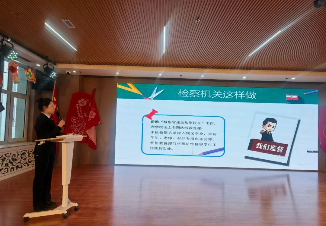 在发出检察建议的同时,我院精心开展《龙检先锋·守“未”晴空》专题普法系列活动,19名担任法治副校长的检察人员摒弃传统说教模式开展普法宣讲26场,覆盖师生13000余人次,以青少年喜闻乐见的方式送法入校,确保普法教育“不停步”、形式“不重样”。