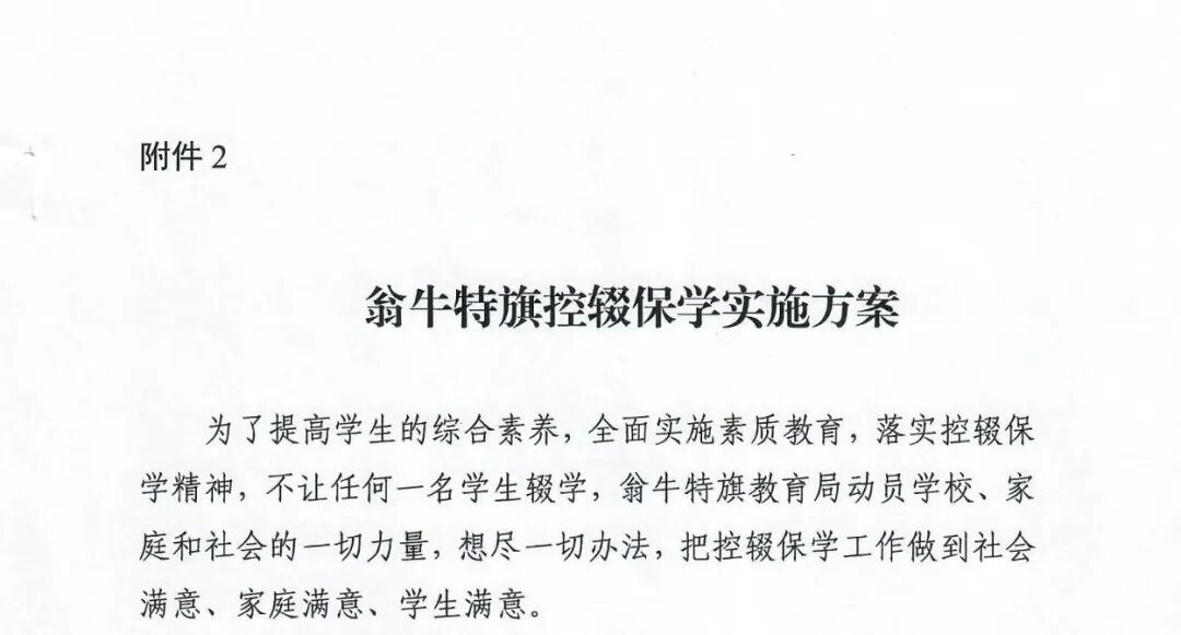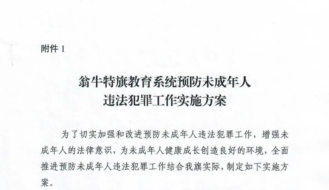 该检察建议旨在推动教育主管部门强化监督,压实学校主体责任,形成齐抓共管的预防格局。收到检察建议后,教育部门高度重视,照单全收,迅速制定了《翁牛特旗教育系统预防未成年人违法犯罪工作实施方案》《翁牛特旗控辍保学实施方案》。两份实施方案目标明确、路径清晰、责任具体,推动了司法保护与学校教育从“建议-回应”到“协同-共治”的深度联动。