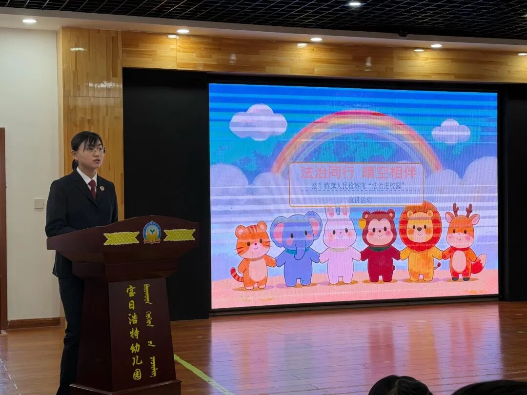为切实加强幼儿法治启蒙教育,提高学龄前儿童的自我保护意识,3月11日,检察官乌日罕走进宝日浩特幼儿园,用汉蒙双语为小朋友们带来了一场别开生面的法治启蒙课。针对学龄前儿童的认知水平,检察官摒弃了枯燥的法条宣讲,精心设计了 “普法小视频+互动问答” 的趣味教学模式。
