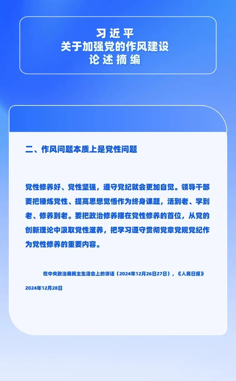 党中央决定,自2025年全国两会后至7月在全党开展深入贯彻中央八项规定精神学习教育,这是巩固深化主题教育和党纪学习教育成果、纵深推进全面从严治党的重要举措,是密切党群干群关系、巩固党的执政基础的必然要求,是推进中国式现代化的有力保障。