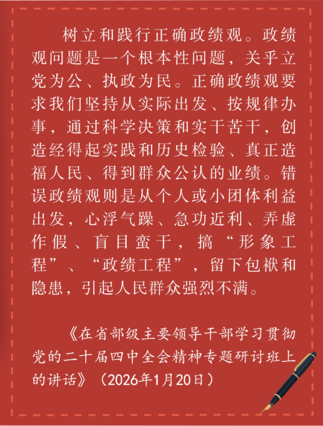 中共中央办公厅印发《关于在全党开展树立和践行正确政绩观学习教育的通知》。经党中央同意,在全党开展树立和践行正确政绩观学习教育。党的十八大以来,围绕政绩为谁而树、树什么样的政绩、靠什么树政绩等问题,习近平总书记发表一系列重要论述,身体力行,率先垂范,为广大党员、干部树立了典范和标杆。《习近平关于树立和践行正确政绩观论述摘编》由中央文献出版社出版发行,让我们一起来学习。