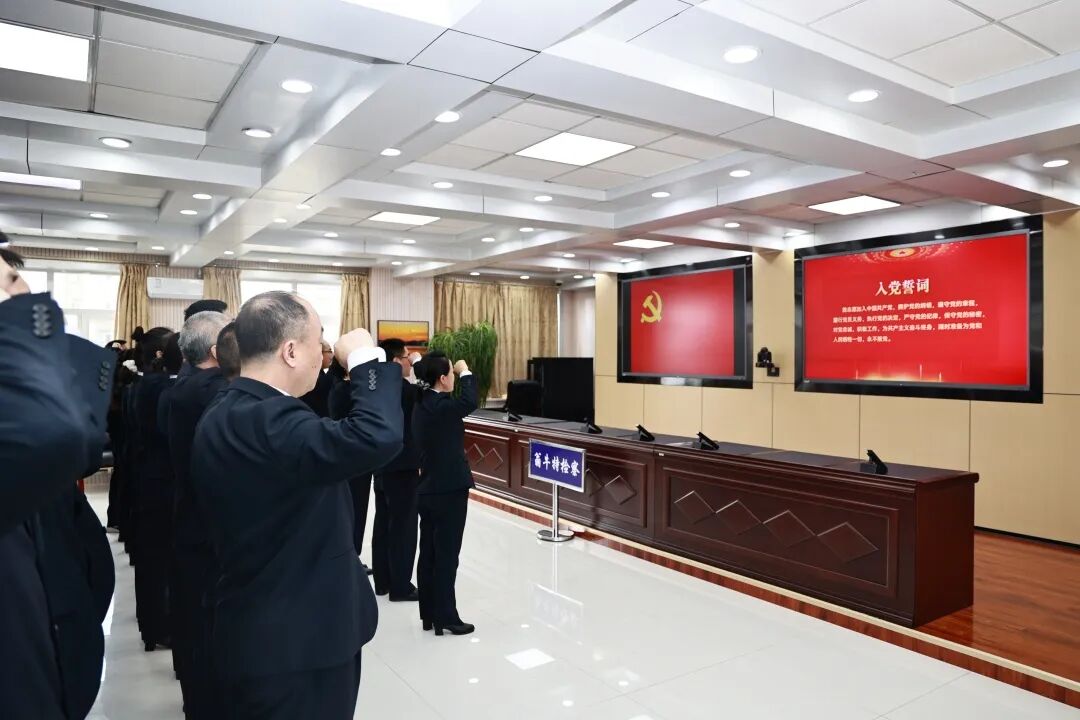 铮铮誓言,指引前行。检察长张莉带领全体党员重温入党誓词,全体党员高举右拳,铿锵有力地说出一句句誓词。庄严的誓词,激发了检察人员忠诚履职、挺膺担当,表达了我院检察人员牢记初心,践行使命,维护公平正义的决心。
