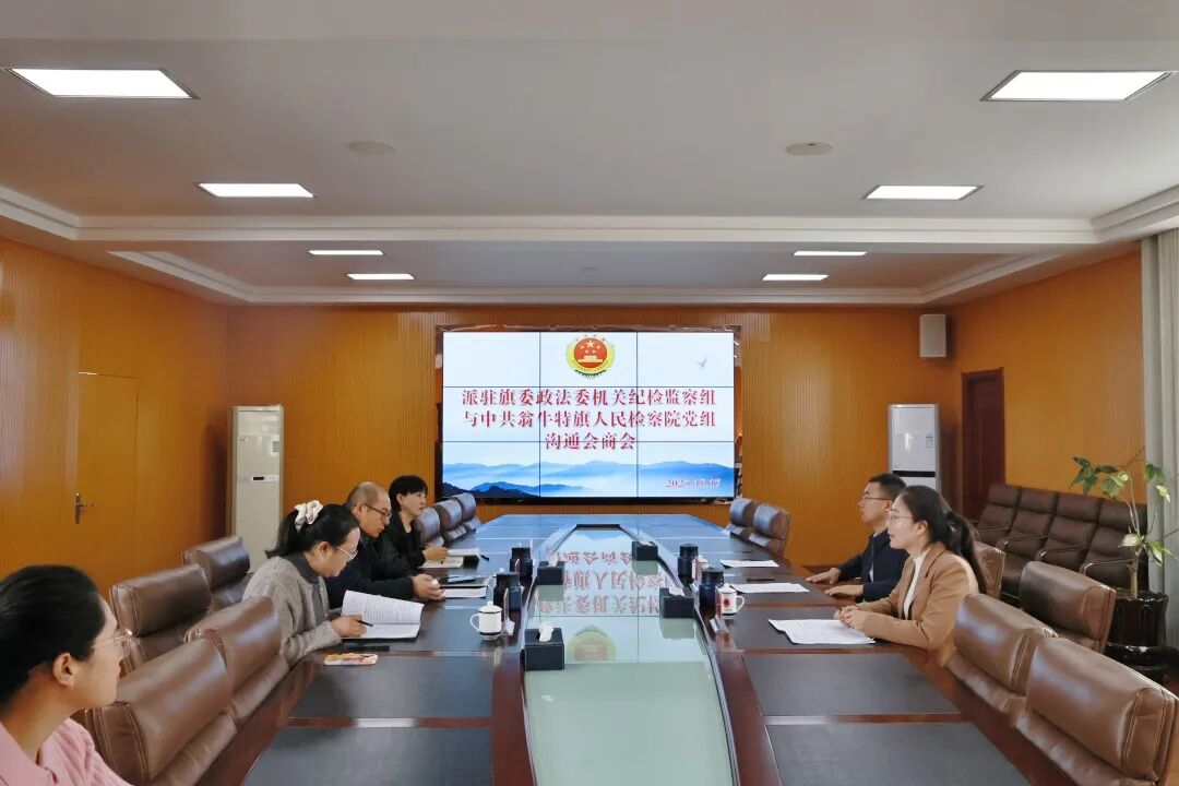 2025年10月17日上午,翁牛特旗人民检察院党组与派驻纪检监察组召开沟通会商工作会议。旗纪委监委委员刘宏睿、派驻纪检监察组组长红丽以及在家班子成员出席会议,会议由院党组副书记、副检察长徐永柱主持。