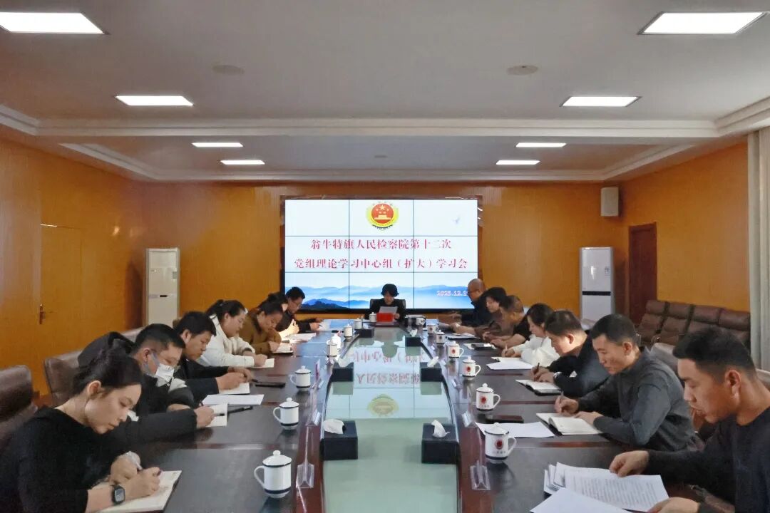 12月11日,翁牛特旗人民检察院召开第十二次党组理论学习中心组(扩大)学习会,传达学习了习近平总书记关于社会主义生态文明建设、坚持总体国家安全观的重要讲话精神、《中国共产党工作机关条例》、《中华人民共和国保守国家秘密法实施条例》等内容,党组书记、检察长张莉主持会议,班子成员、部门负责人参会。