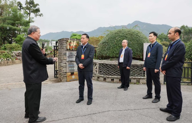11月6日,彭代元代表(左二)到贺州市八步区莲塘镇白花村人大代表联络站进站履职,深入莲塘镇贺州行知学校生活教育基地,听取青少年及留守儿童等研学活动开展情况汇报。